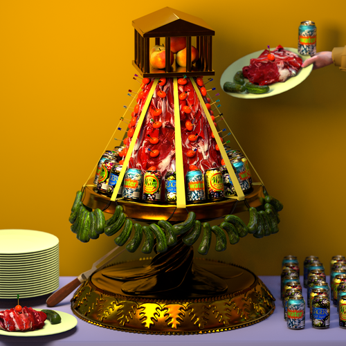 The trompe-l’oeil element was a major goal with these photo-realistic renderings, made with Cinema 4D and Octane Render. I wanted an image that might look like a photo someone’s mother took of some outdated culinary achievement, circa 2001.